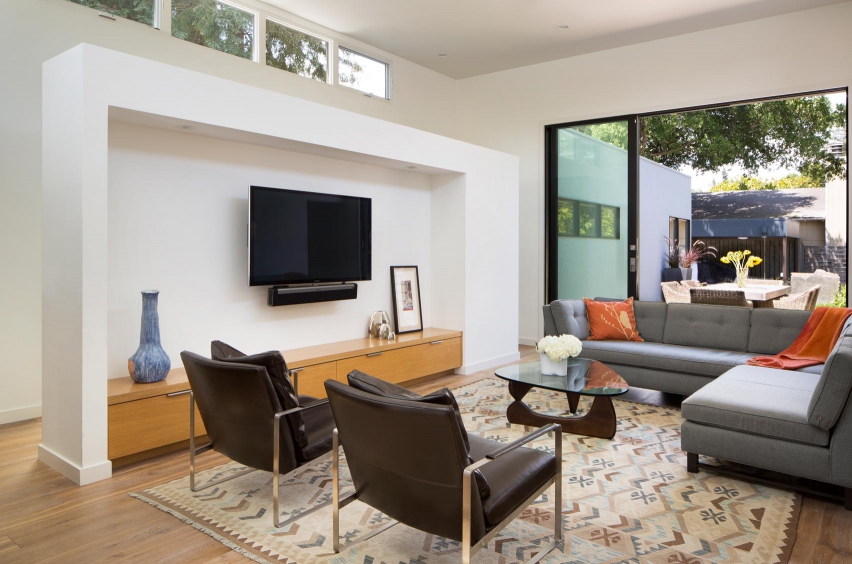 EMFs (electromagnetic fields) also played a roll in the project. All objects have them, but because there’s been recent concern that those emitted by electronic devices may have negative effects on long term health, the clients chose to hard-wire internet and TV connections, among other measures, to reduce wireless transmissions, and replaced the smart electric meter with an analog one, locating it far from bedrooms.