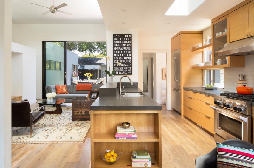 We took the renovation further than originally intended because the plan changed from a traditional 50’s style remodel to one that is extremely contemporary, thus we ultimately removed everything except the original foundation. However, because the location was in a floodplain, we needed to raise the elevation of the floor to conform to code. This required adding on to the existing foundation and reframing the entire floor plan — a particular challenge due to the difference in how new and old foundations tend to move.