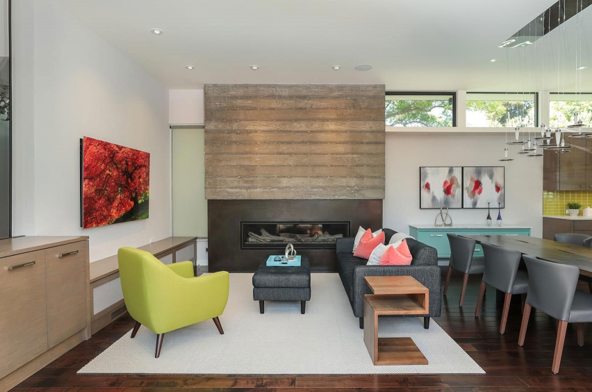 Most challenging was a large, custom board-form concrete fireplace that anchors the exterior lines in dramatic fashion — how to build it that tall in one pour and have the details come out well. We invested lots of time with the architect, client and concrete sub collaborating on how best to pull it off — which we did.