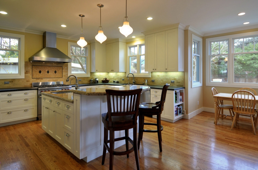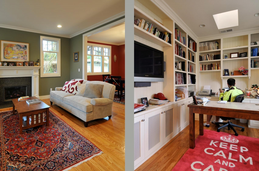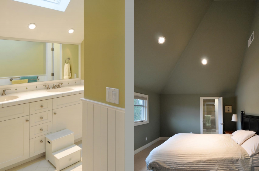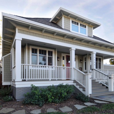 This new house, built for a young couple with two small children, features a home office and all of the bedrooms on the upper level. The real challenge, however, was keeping its design in scale with the rest of the neighborhood, and getting it through the review committee. It’s situated in south Palo Alto, in the flood zone, where the majority of the houses are low roofed and single story — in fact many are Eichler’s — so it was important that the house appear to be smaller than it actually is. By taking a pragmatic approach to the layout and finishes, we were also able to bring the project in on budget, which was important for this young, hardworking family.