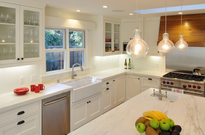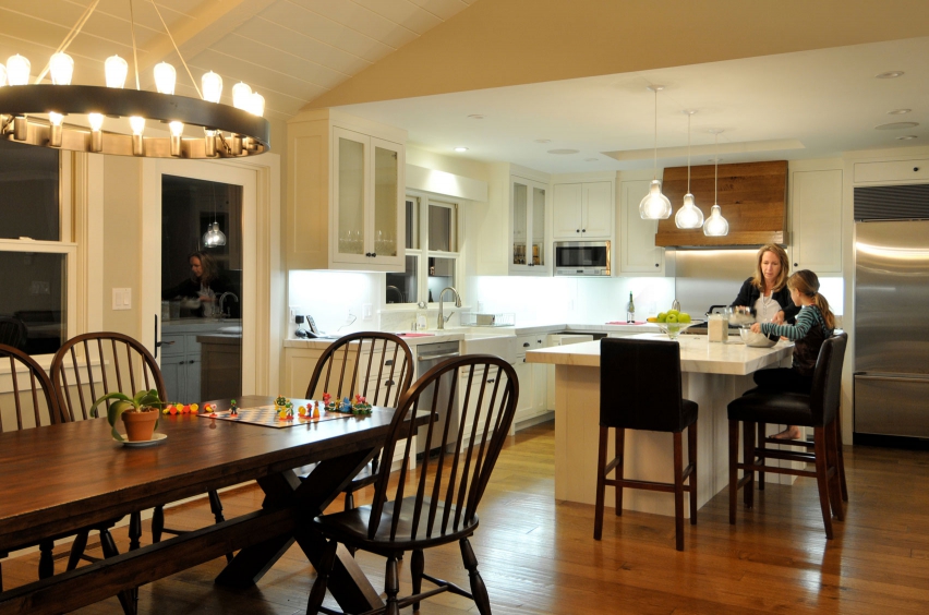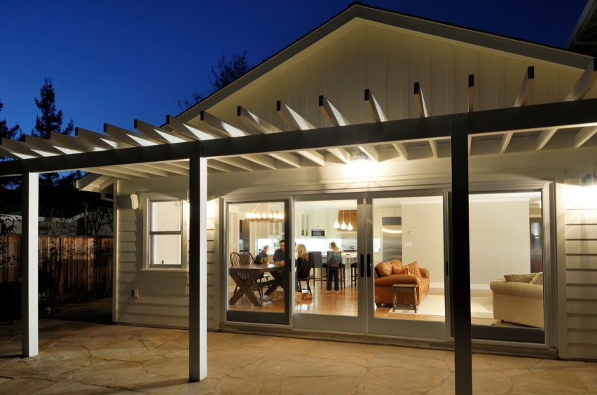 Designed by Hubbard Godfrey Architects in San Francisco, this project is a shining example of Mediterraneo’s deep understanding of the design process. With our design and build background, we were able to help the homeowners navigate the difficult challenges of turning a common single story ranch home into a contemporary farm house. A master suite, including sitting room and accordion style patio doors, was created when adding the second story. The house was taken down to the studs and completely restyled in the process. With two young children and a dog, the family needed a durable house while maintaining a high sense of style and finish.